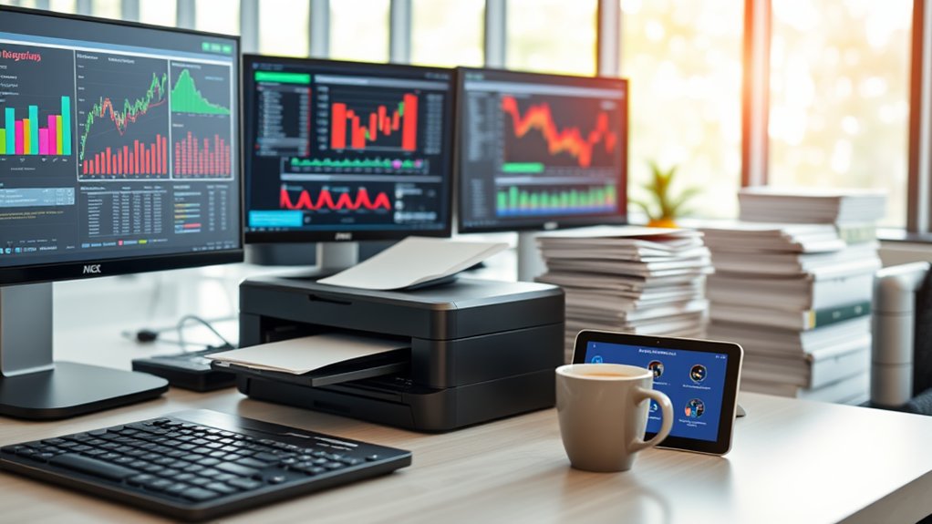 I’ve found that optical character recognition (OCR) technology effectively digitizes paper receipts and invoices, while API connections guarantee real-time synchronization across platforms. By setting up rules-based categorization and reconciliation, you’ll transform chaotic transaction volumes into streamlined data flows. Your automated system will handle the heavy lifting, letting you focus on analysis and strategic decision-making.