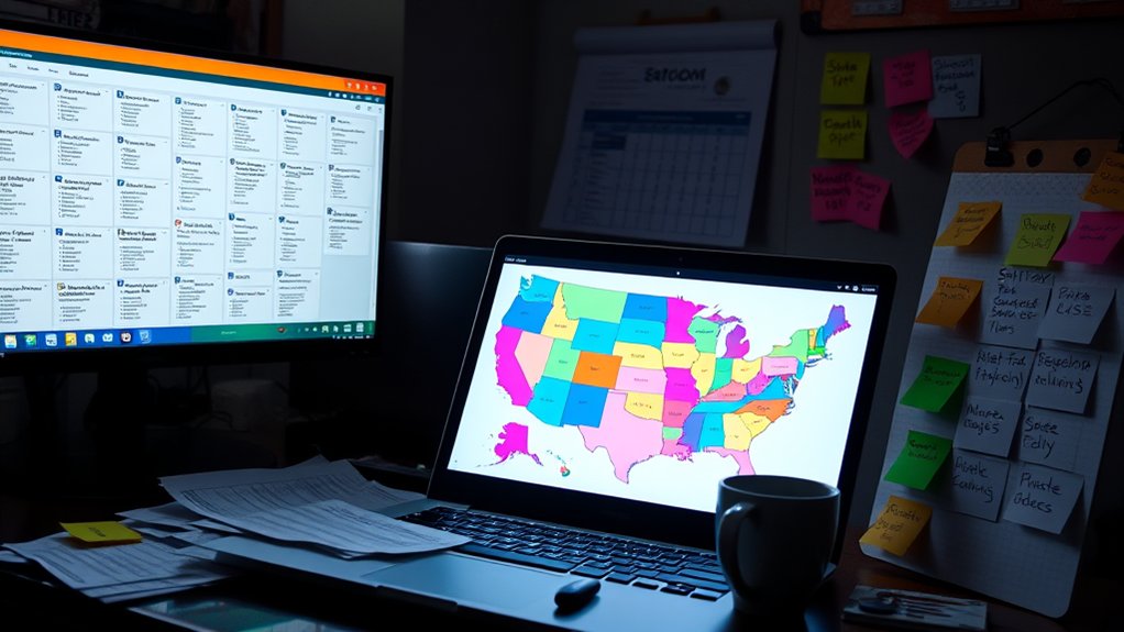 Operating across state lines means you’ll need to navigate multiple tax obligations. You’ll have to monitor sales tax nexus thresholds ($100,000 in sales or 200 transactions), register for state income tax when economic thresholds are met, manage employment taxes for remote workers, and obtain necessary business licenses and permits in each jurisdiction. I’ll help you understand the key requirements, compliance strategies, and record-keeping practices to maintain proper multi-state tax compliance.